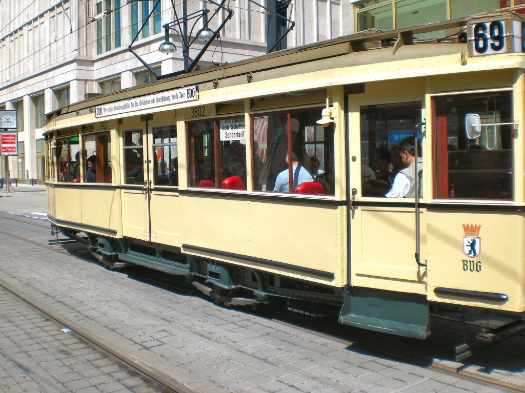 Tw 3802 mit Hänger 984 an der Hst. Alexanderplatz, Berlin Sommer 2007